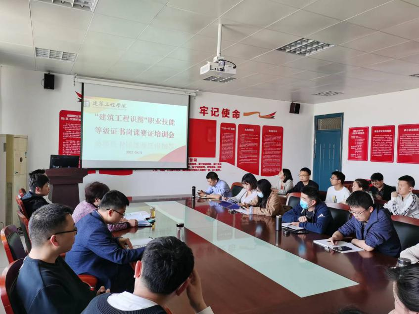 4月8日下午,球王会体育官方网站院长刘玉清、副院长黄波、教务办主任潘磊、实验实训办主任邱岗等领导在学院三楼会议室组织建筑技术和工程造价教研室全体教师参加广州中望龙腾软件股份有限公司组织的建筑工程识图证书“岗课赛证”融通培训会。