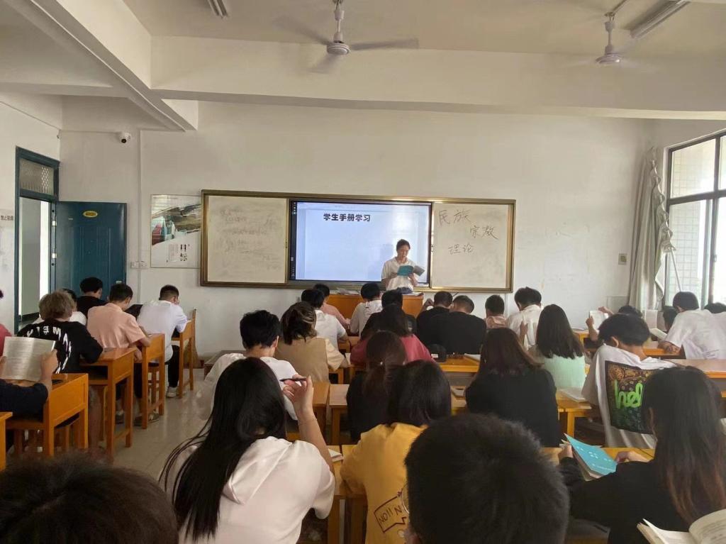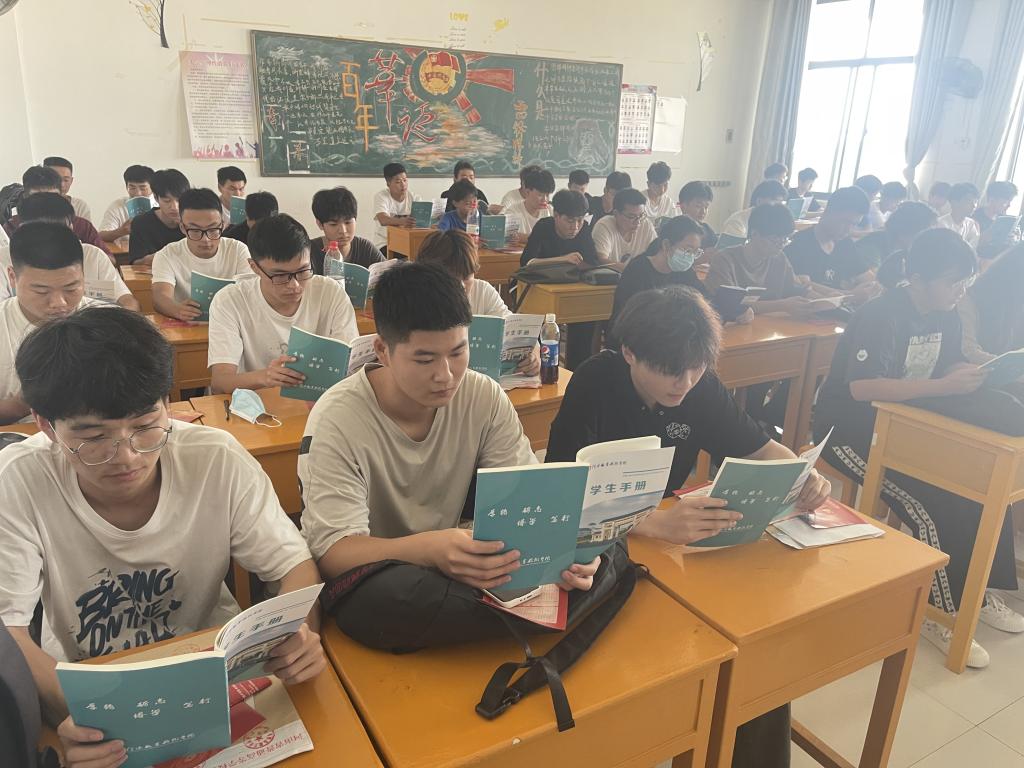 认真学习《信阳职业技术学院学生手册》,加强校规校纪教育,强化纪律意识,提高新生自我教育、自我管理和自我服务的能力,促进良好班风、学风的养成。