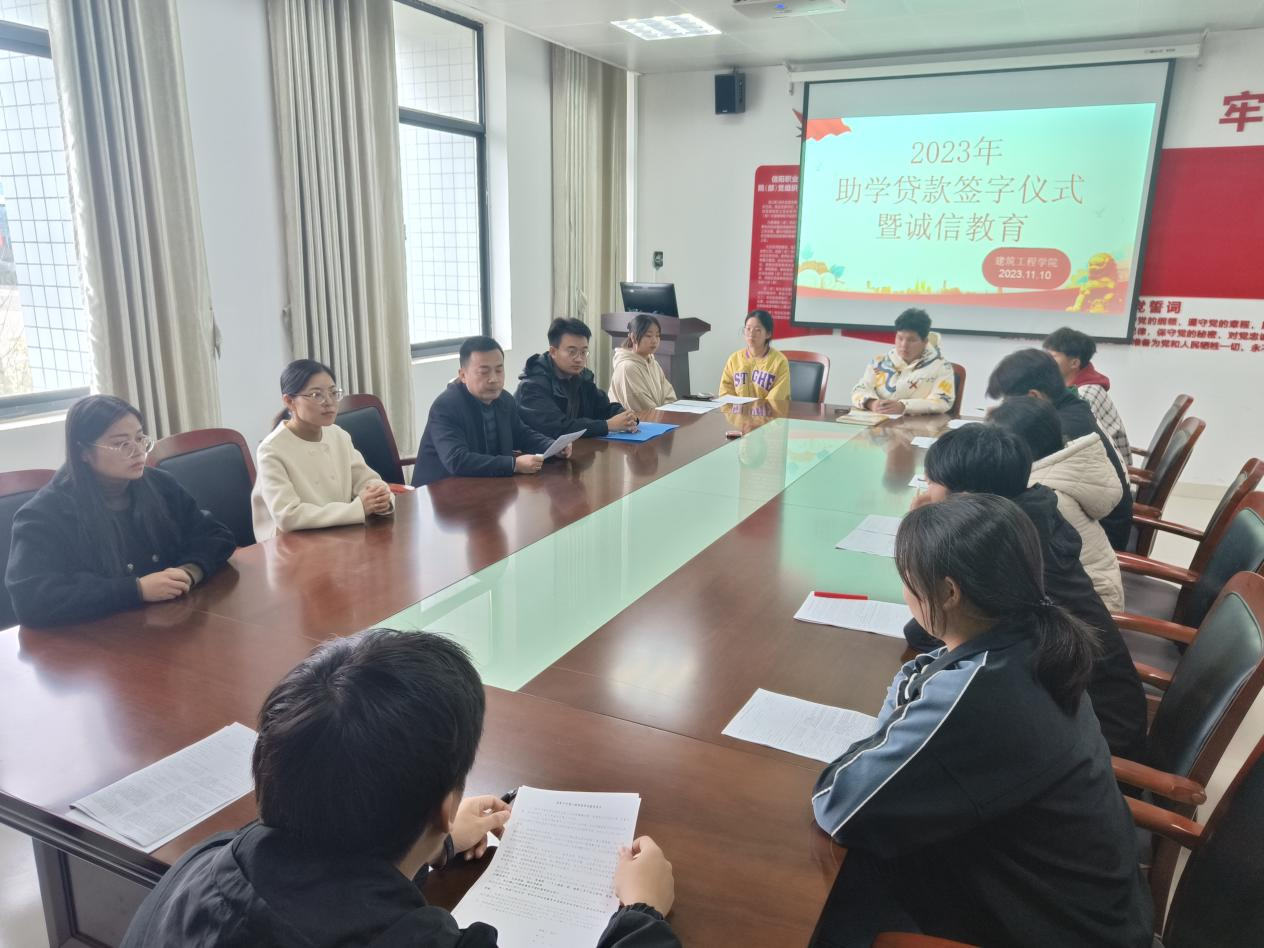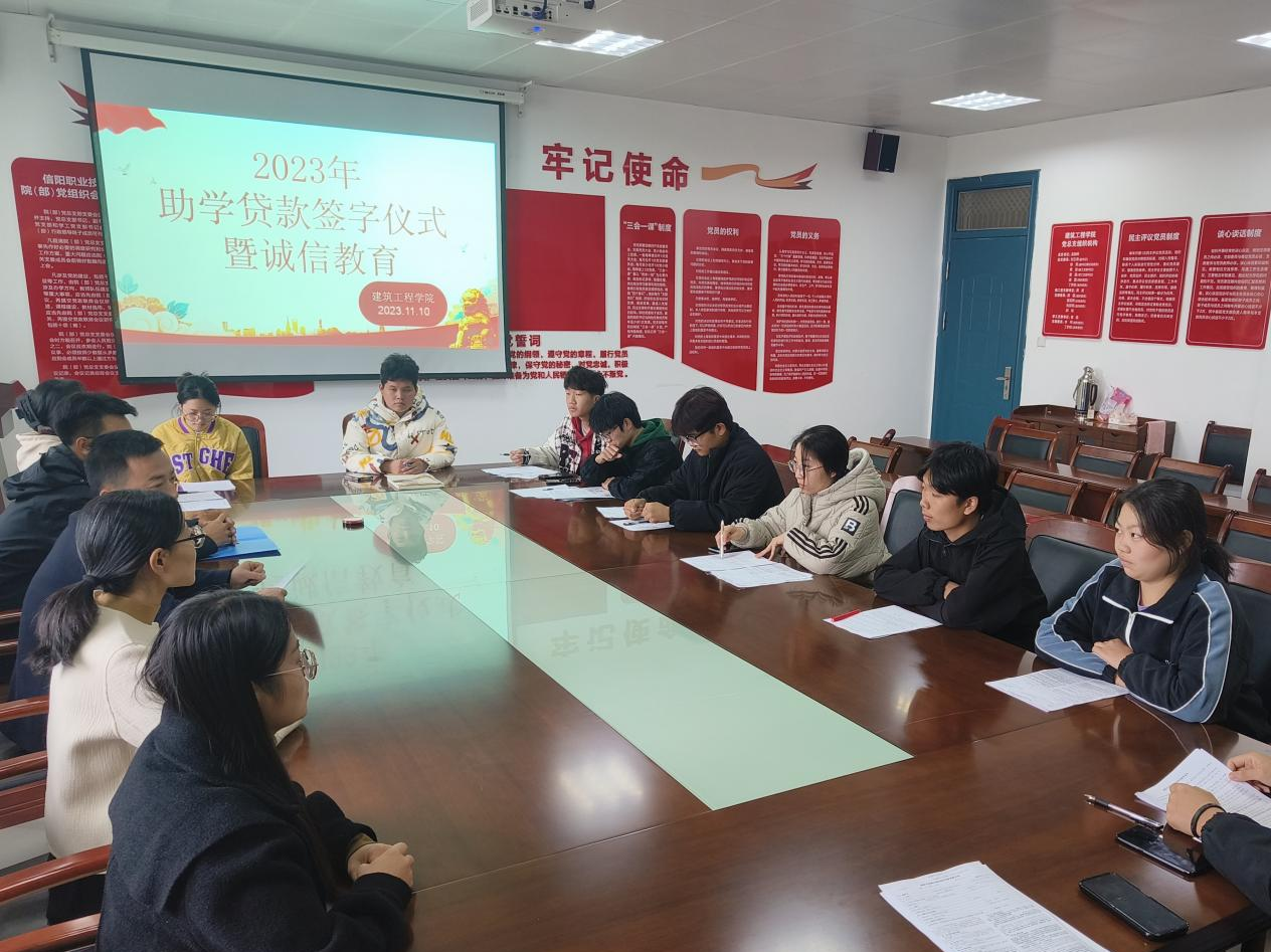 为落实高校国家助学贷款政策,加强对学生的诚信教育,根据学校资助中心工作安排,球王会体育官方网站于11月10日上午在3013会议室举行了2023年助学贷款签字仪式。学工办主任李何、资助专干孙浩和贷款学生辅导员参加签字仪式。