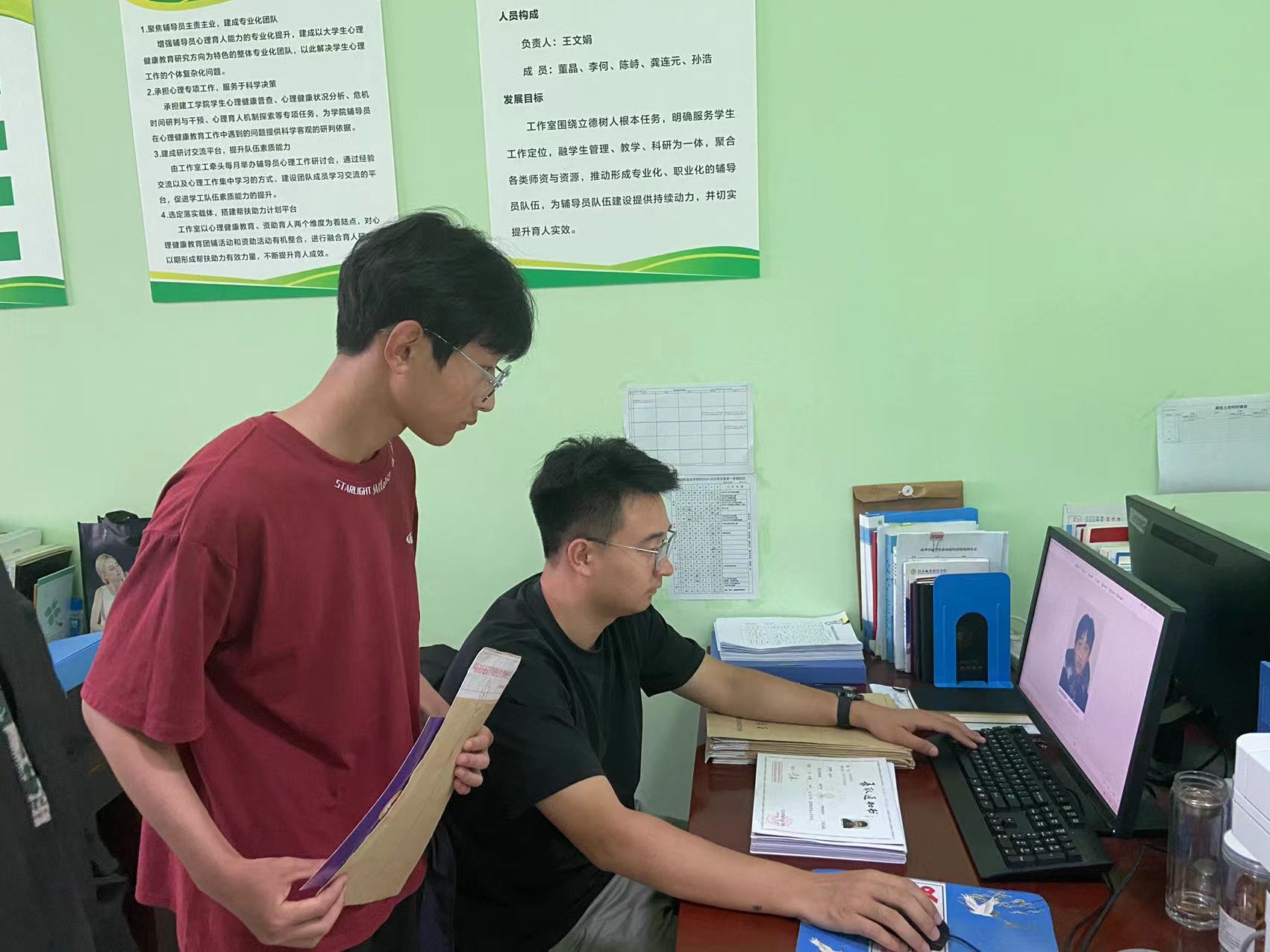 报到当天辅导员 “六对照”进行入学资格审查,六对照即对录取通知书、准考证、电子档案(迎新系统数据)、居民身份证、考生档案与学生本人进行核对,确保为同一人。
