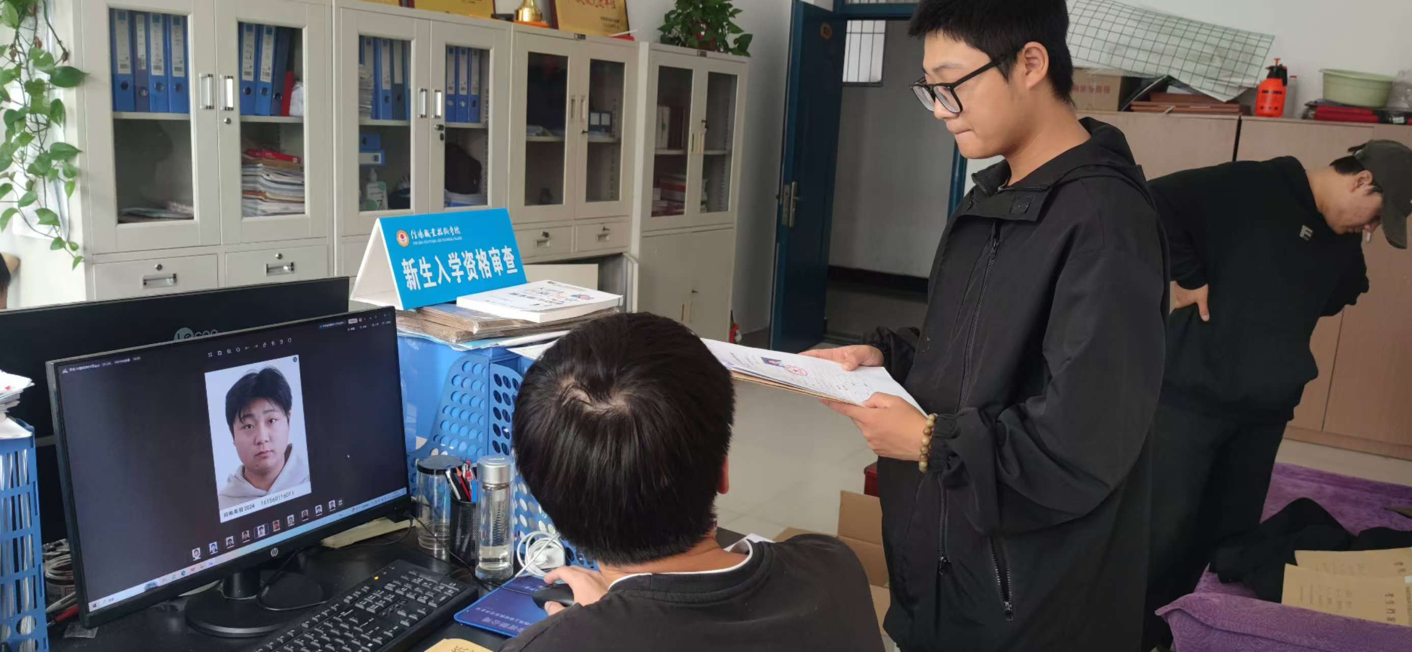 在新生报到期间,做好新生入学报到的基本对照,初步审核了录取通知书、身份证和报到新生的一致性。填写《2024级新生入学资格审查登记表》,并由学院进行三审三签。迎新现场,辅导员(班主任)同时进行登录迎新系统,对报到学生点击报到。