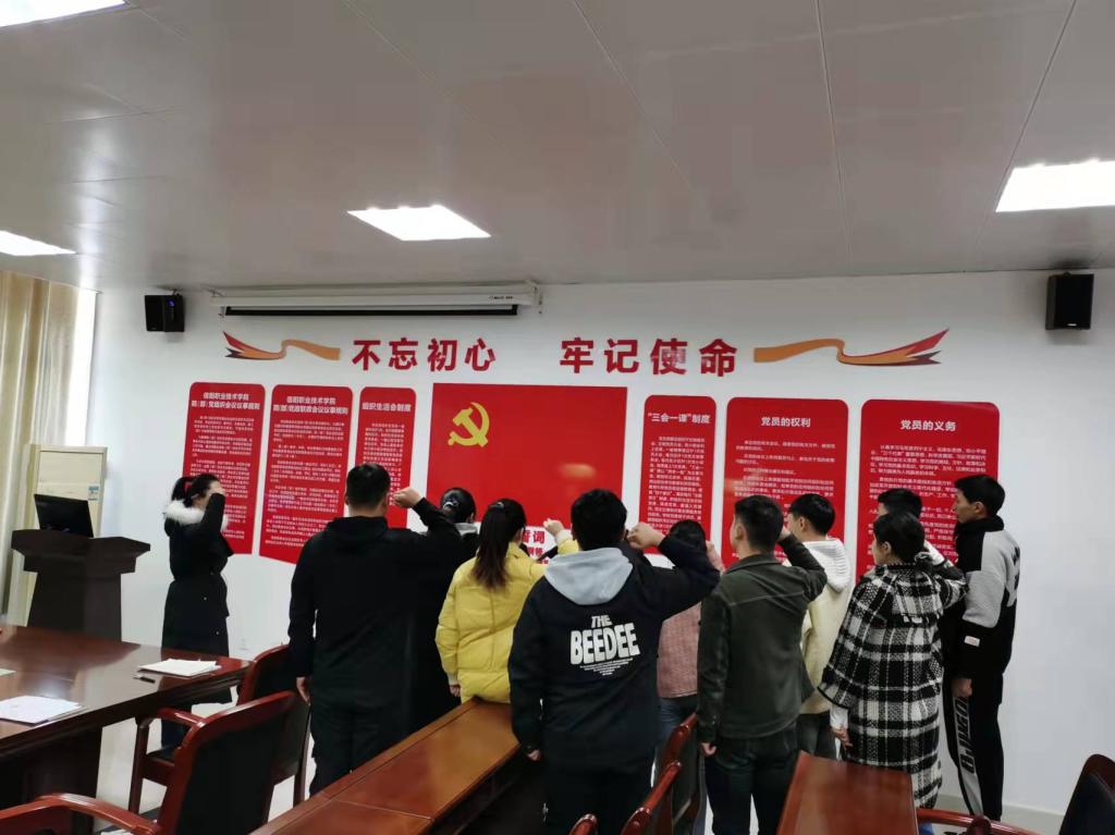 会上,11名党员发展对象向大会汇报了个人情况,表明了入党意愿;到会党员教师对申请人能否入党展开讨论,通过无记名投票,一致同意接收11名党员发展对象成为中国共产党预备党员;学工党支部宣传委员丁梦姣带领新入党学生面向党旗庄严宣誓。