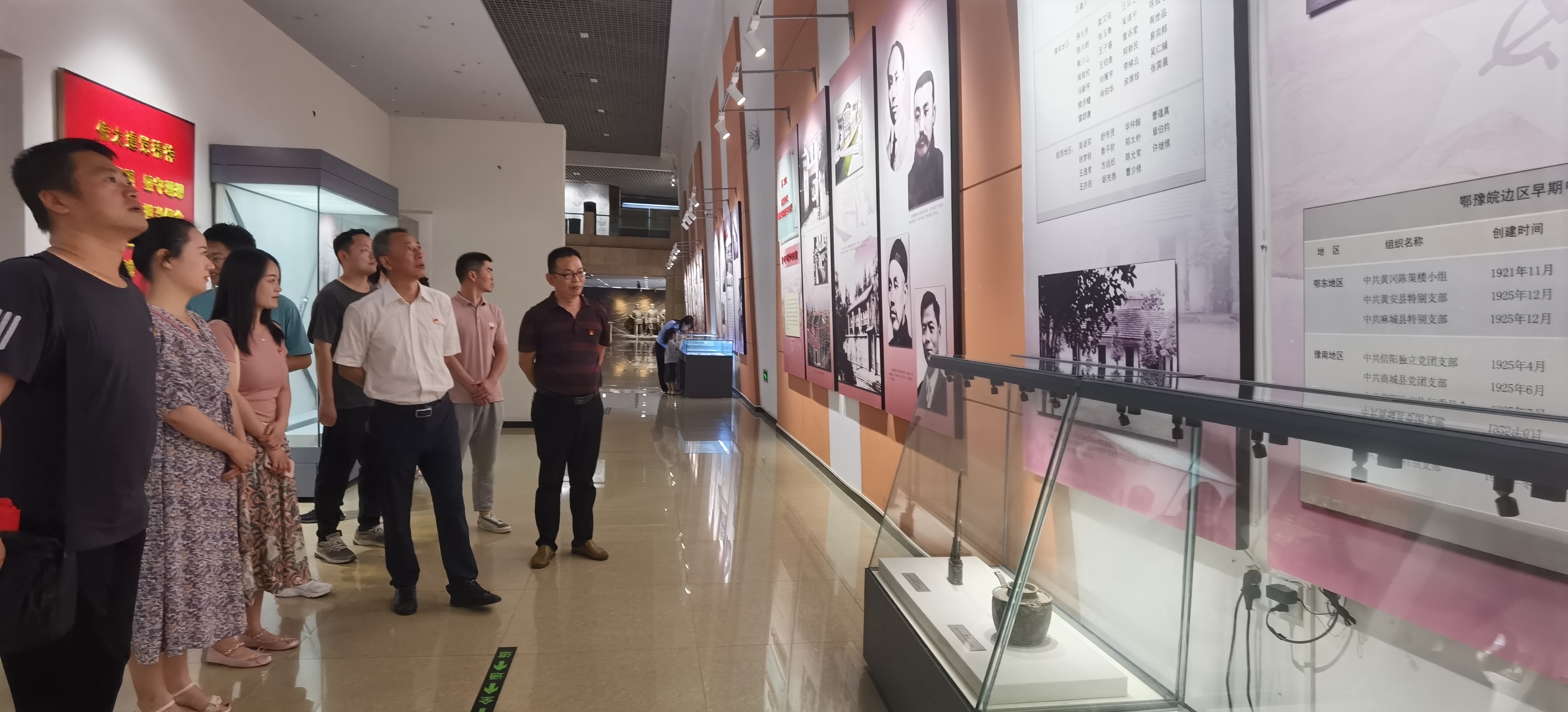 全体教职工党员在纪念馆入口大厅面对党旗庄严宣誓,通过重温入党誓词不忘初心、牢记使命。鄂豫皖革命纪念馆展览的几百张历史图片和千余件实物、文献及档案,全面展示了鄂豫皖革命根据地形成、发展和不断壮大的过程,反映了我党从大革命时期到解放战争时期各个历史阶段发生在鄂豫皖大地上的重大历史事件,深刻诠释了"坚守信念、胸怀全局、团结奋进、勇当前锋"的大别山精神。所有党员同志通过图片文字实物回顾了我党走过的艰难历程,学习英烈事迹,近距离感受革命先烈为新中国解放事业不畏艰难、勇于斗争的大无畏精神,接受“大别山精神”的洗礼。