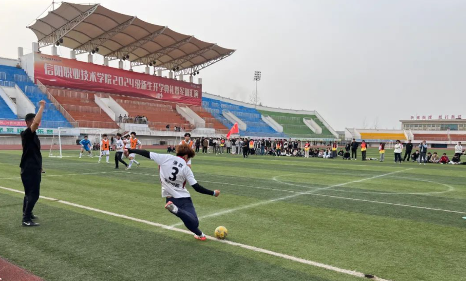 球场上的比拼异常激烈,外围的加油呐喊声也此起彼伏,观赛同学们展现了特有的活力与热情,让整个校园洋溢着青春的气息。