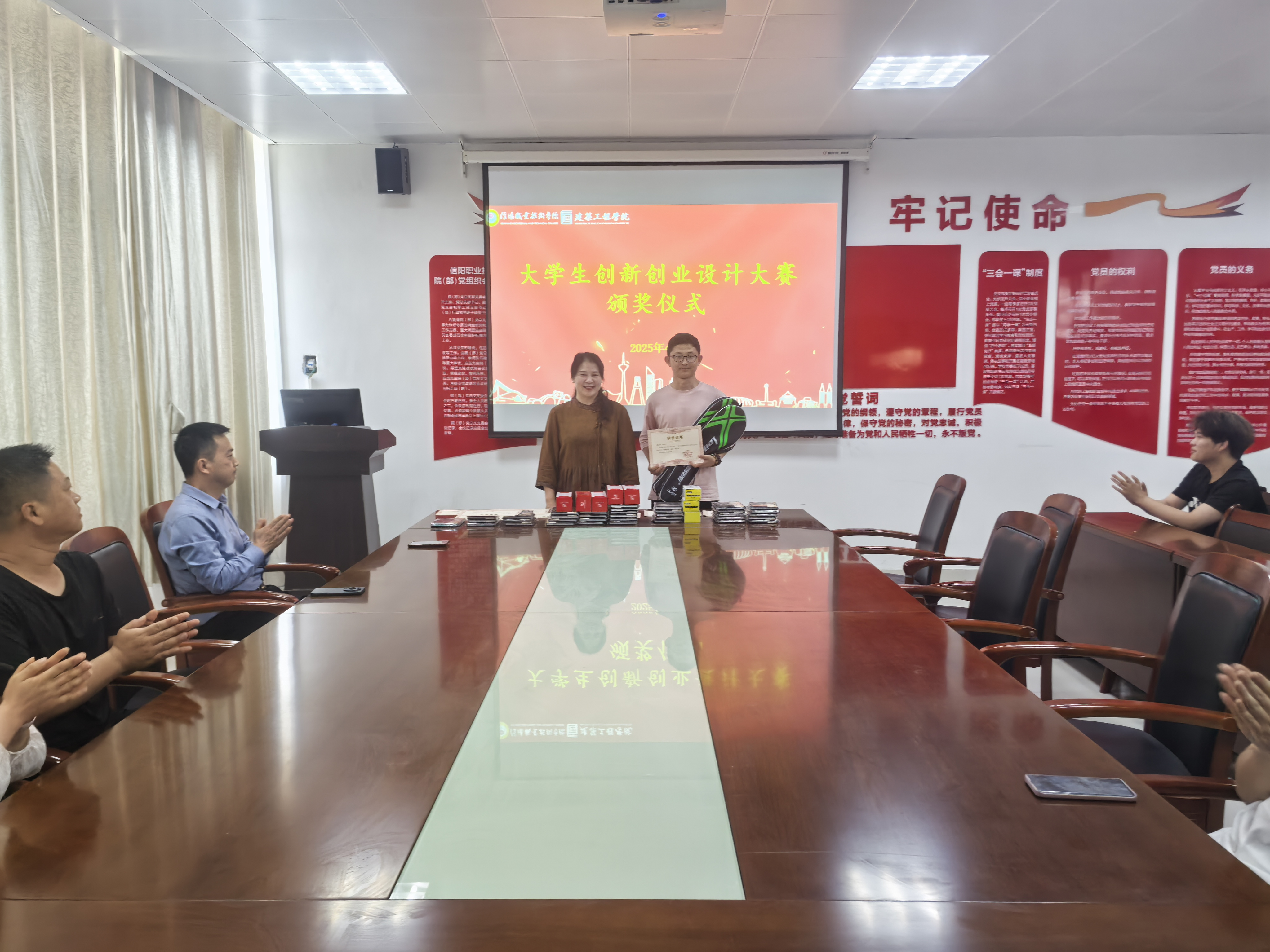 4月22日,学院召开了创新创业设计大赛总结表彰大会。学院党总支书记刘亚梅为获奖团队颁发荣誉证书和奖品并讲话,刘亚梅表示,学院将持续深化“专创融合”、“全员赋能”育人模式,通过建立创新创业导师库、搭建校企合作孵化平台等措施,着力培养学生创新思维和创业能力,为学院在大学生创新创业设计大赛实现新的突破打下扎实基础。