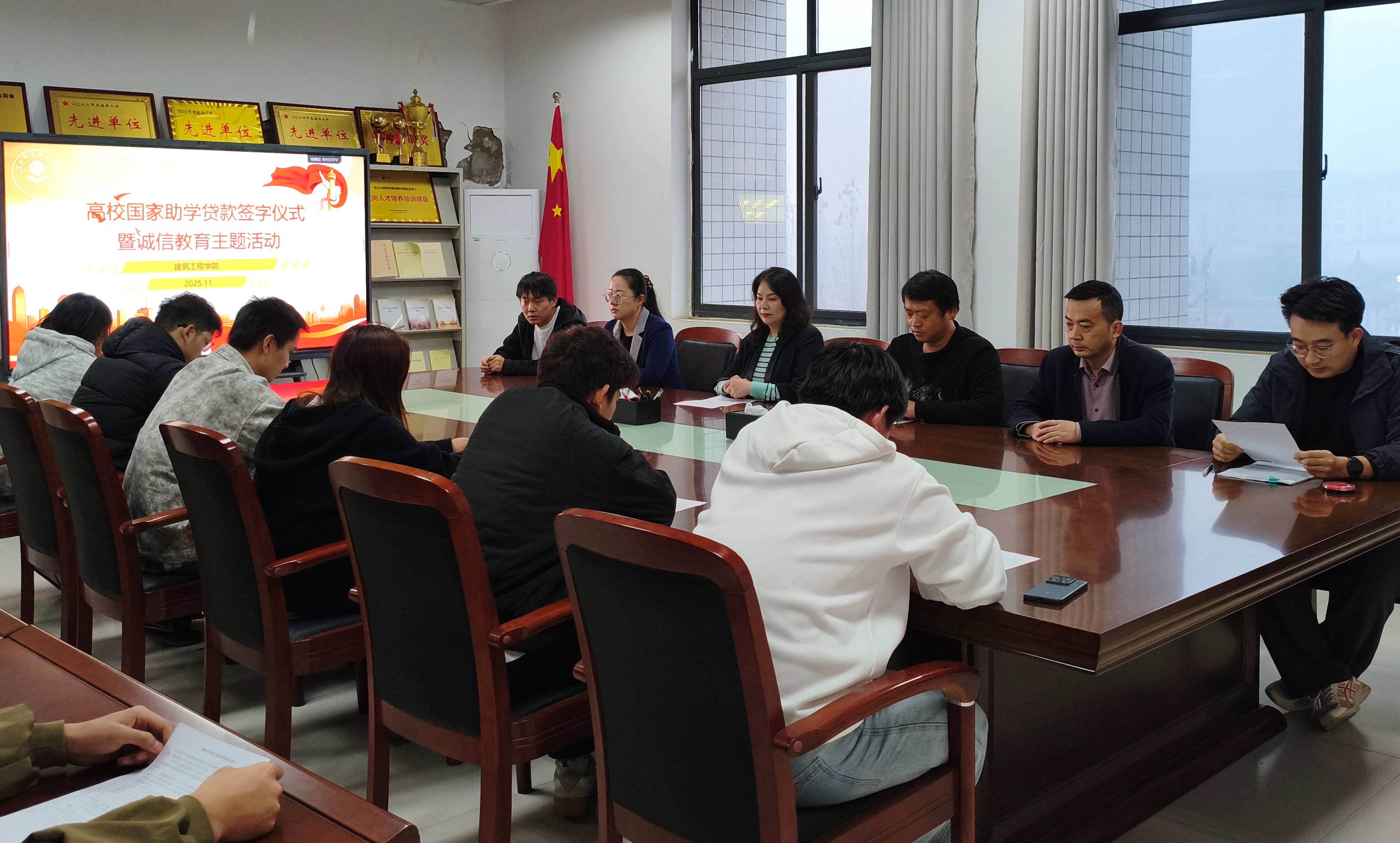 11月6日下午,球王会体育官方网站在3013会议室举行高校国家助学贷款签字仪式暨诚信教育主题活动,学院党总支书记刘亚梅、学工办主任李何、团总支书记丁梦姣、专职辅导员和11名校园地助学贷款学生参加,仪式由副院长董晶主持。